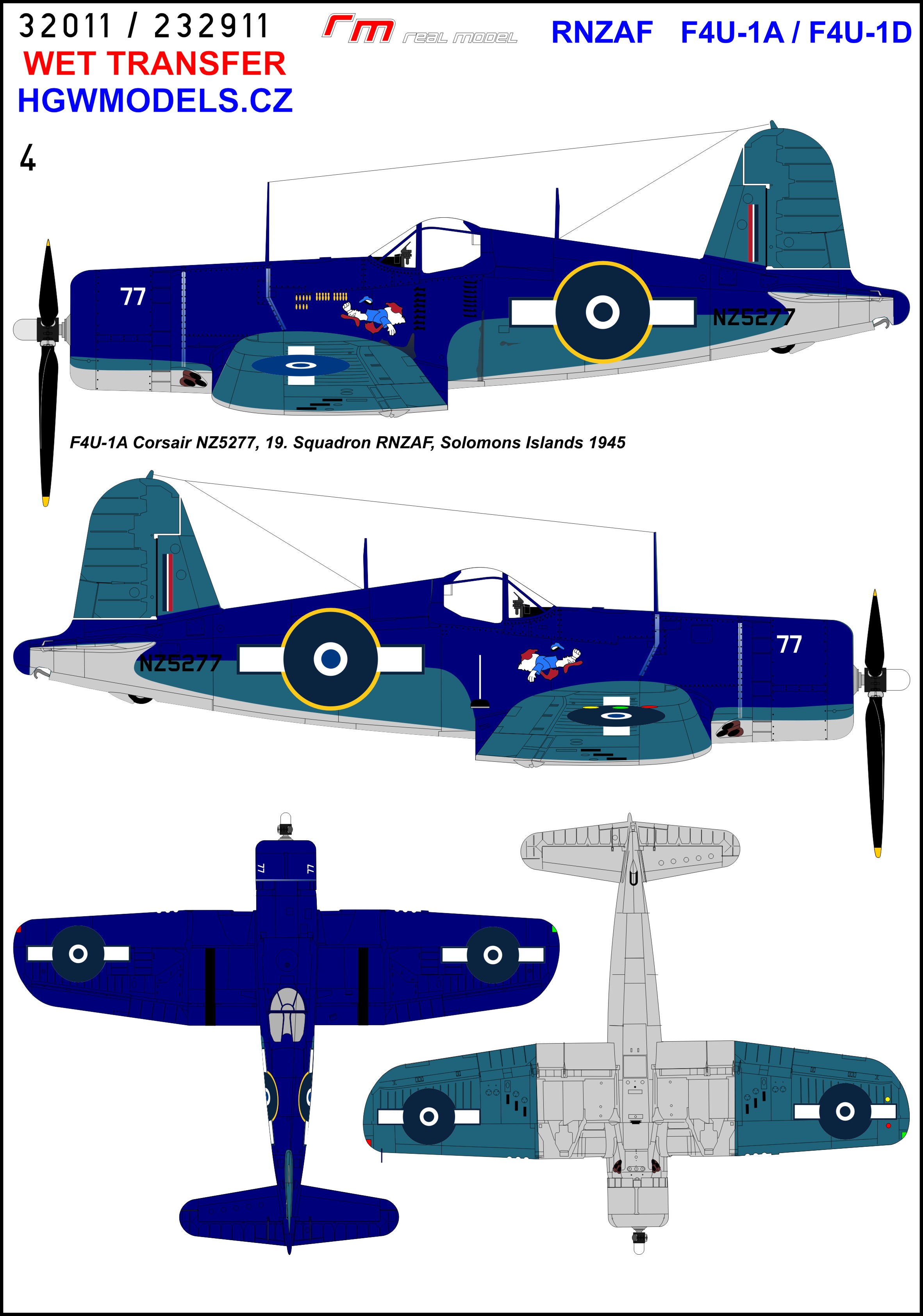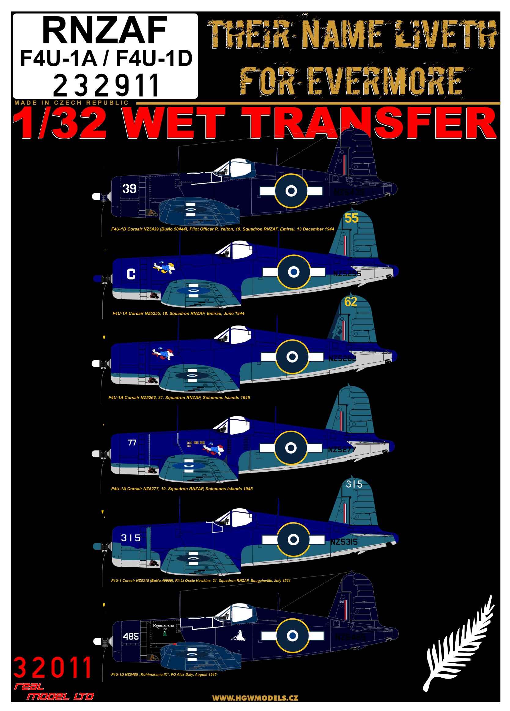 HGW - 1/32 Rnzaf Vought F4U-1A / F4U-1D Corsair Markings