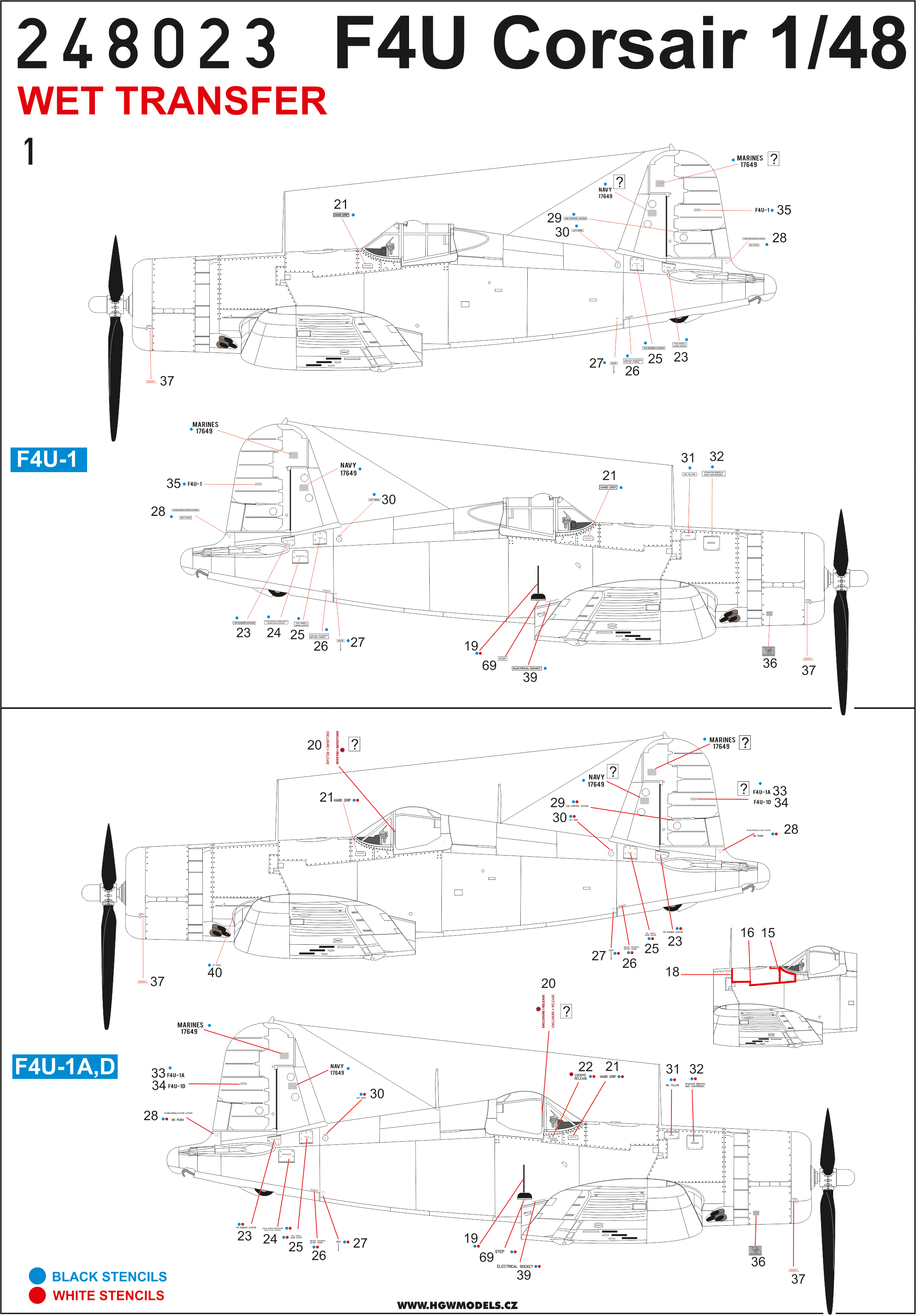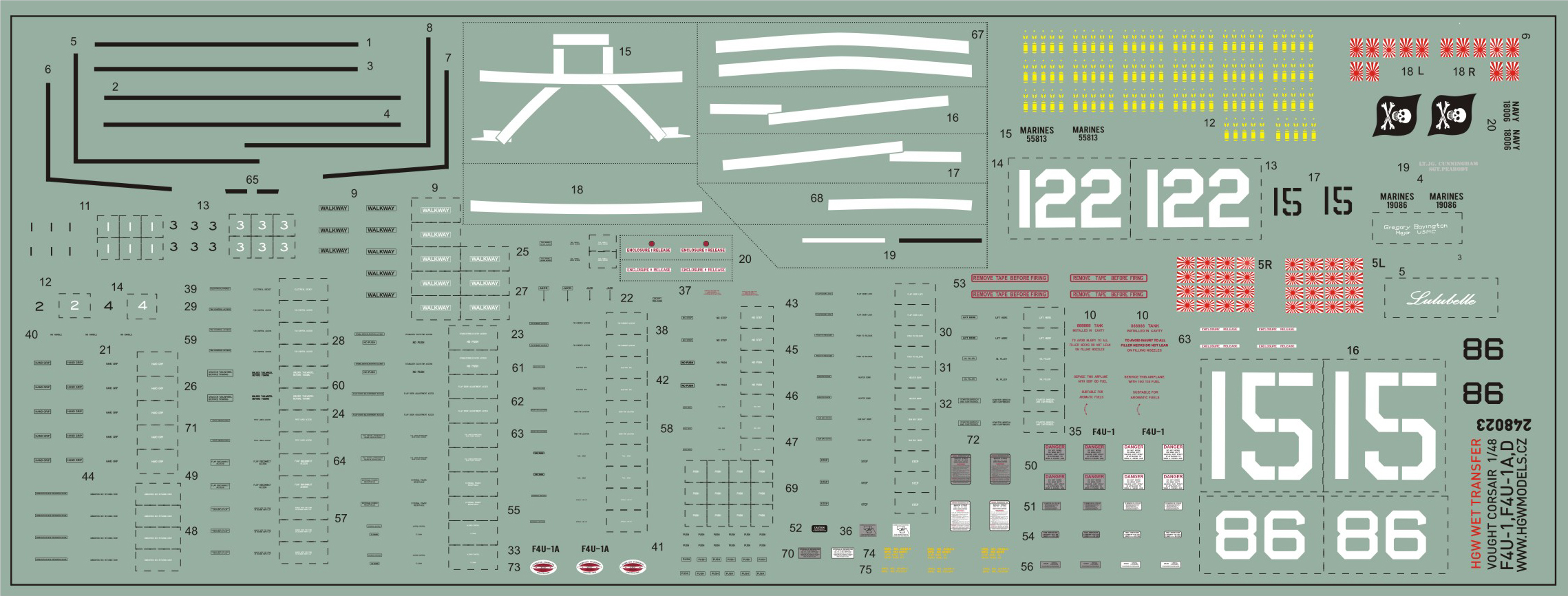HGW - 1/48 Vought F4U Corsair Stencils Wet Transfers [F4U-4B F4U-4 F4U-5N F4U-1F4U-1A F4U-2 F4U-7]