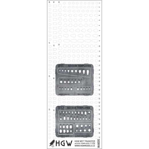 HGW - 1/32 Access Templates Plus Positive Rivets Set consists of positive rivets in 1/32 scale and photo-etched templates made from nickel silver. Riveting sets from Hgw Models give to surfaces of plastic kits highly realistic look. We recommend to apply them under the paint and when your model is painted just polish the surface to make the accessory visible.
