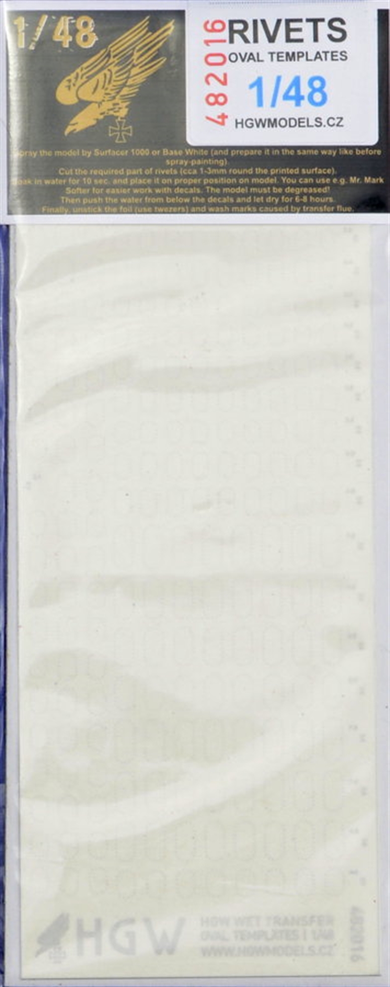 HGW - 1/48 Oval Templates - Positive Rivets Set consists of free lines of positive rivets in 1/48 scale. Riveting sets from HGW Models give to surfaces of plastic kits highly realistic look. We recommend to apply them under the paint and when your model is painted just polish the surface to make the accessory visible.
