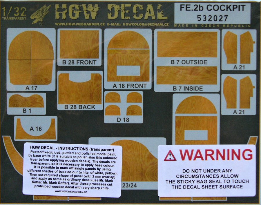 HGW - 1/32 Decals Fe.2b Cockpit (transparent) new release