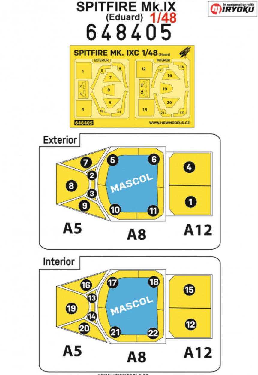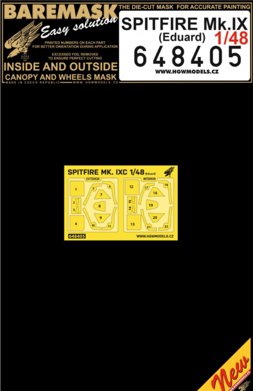 HGW - 1/48 Supermarine Spitfire MK.IXc/Mk.IXe canopy paint mask (inside and outside) (for Eduard kits)