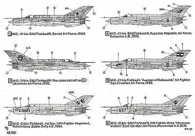 Hi Decal - 1/48 RE-PRINTED!!! Mikoyan MiG-21 bis Fishbed L/N 6 Soviet Air Force, Ukrainian Air Force, Polish Navy, Yugoslavian Air Force, Croatian Air Force, East German Air Force