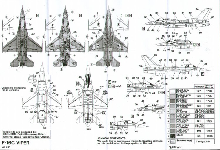 HI Decal - 1/72 Lockheed-Martin F-16C (4) 84-240 33TFS SW Shaw Air Force Base, 64-212 33TFS in experimental desert camo, Both Desert Storm, No 355 Valley Sqn, No 603 Scorpion Sqn. Both Israeli Defence Force