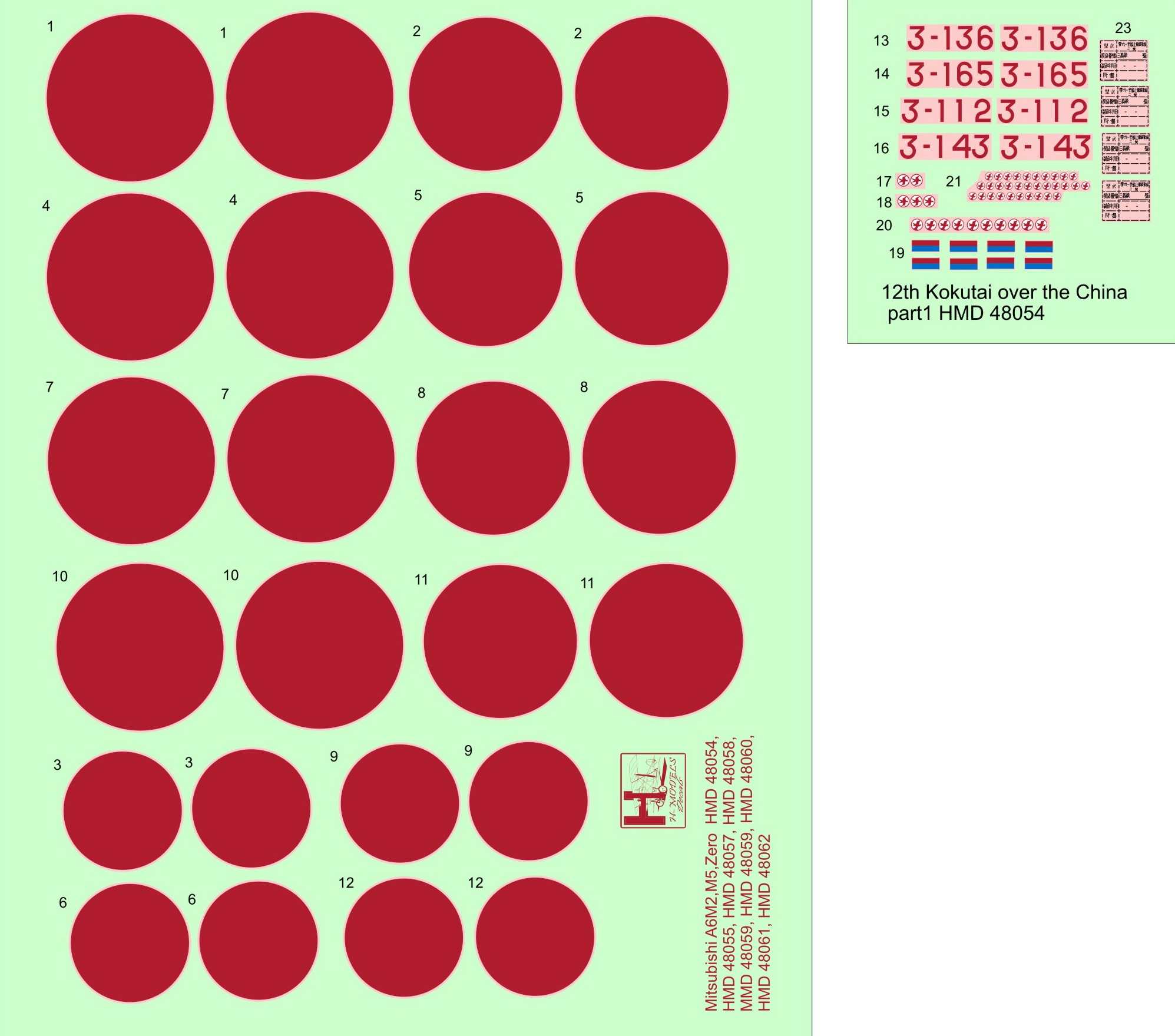 HM DECALS - 1/48 Decals Mits.A6M2 Zero 12th Kokutai over China