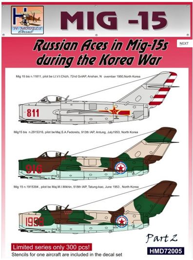 HM Decals - 1/72 Decals MiG-15 Russian Aces in Korea War Pt.2