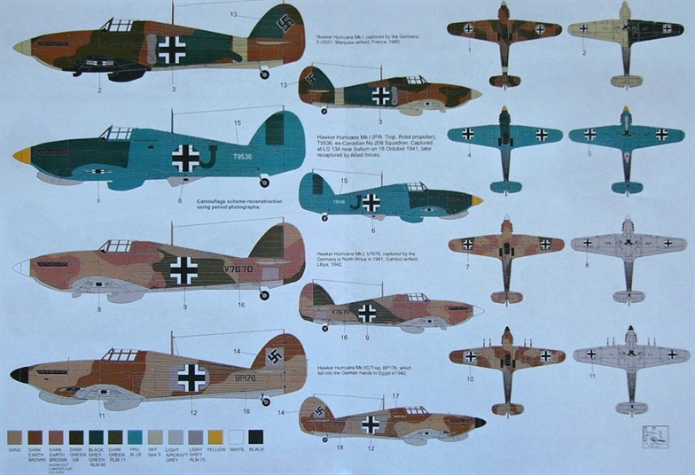 HM DECALS - 1/72 Decals Hurricane Mk.I/II Luftwaffe (4x camo)