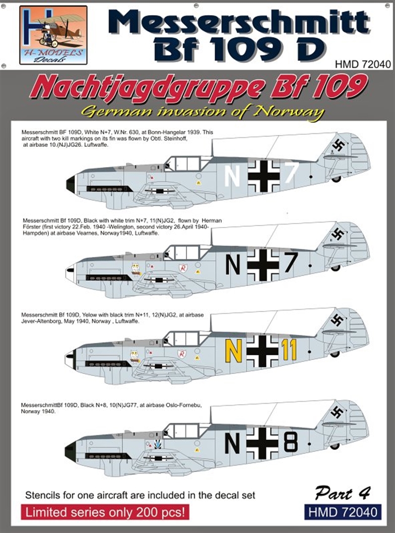 HM DECALS - 1/72 Decals Bf 109D German invasion of Norway