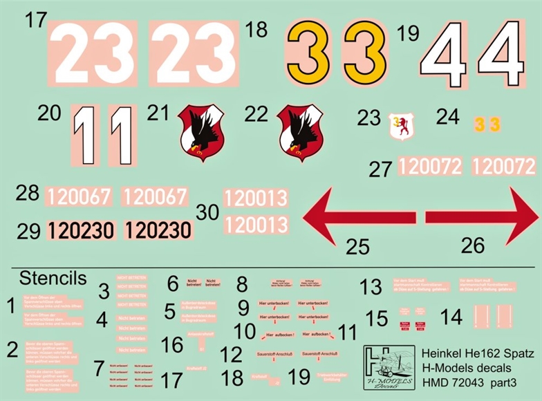 HM DECALS - 1/72 Decals He 162 in Luftwaffe Service - Part 3