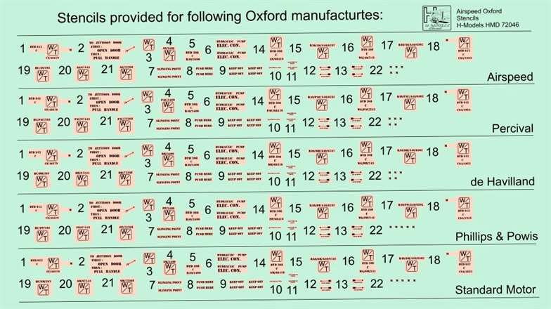 HM DECALS - 1/72 Stencils Airspeed Oxford (for 5 aircraft)
