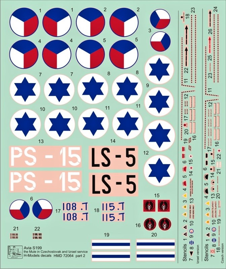 HM DECALS - 1/72 Decals Avia S-199 Czechoslovak & Israel - II.