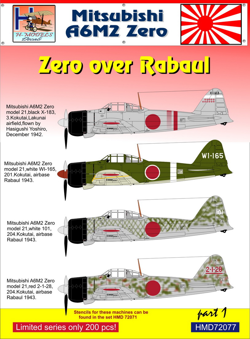 HM DECALS - 1/72 Decals Mitsubishi A6M2 Zero over Rabaul Pt.1