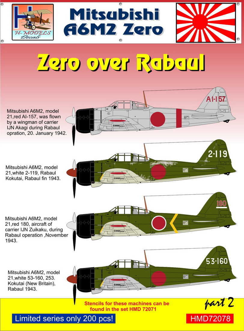 HM DECALS - 1/72 Decals Mitsubishi A6M2 Zero over Rabaul Pt.2