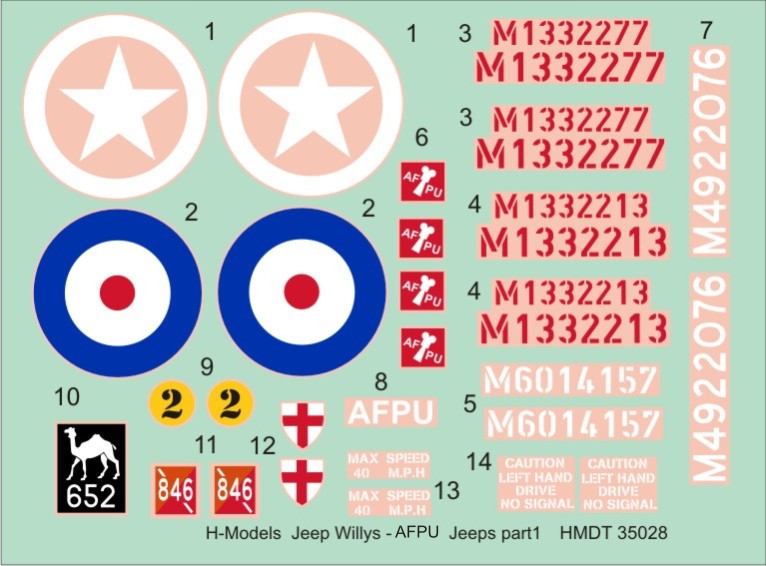 HM DECALS - 1/35 Decals Jeep Willys MB/Ford GPW AFPU Jeeps