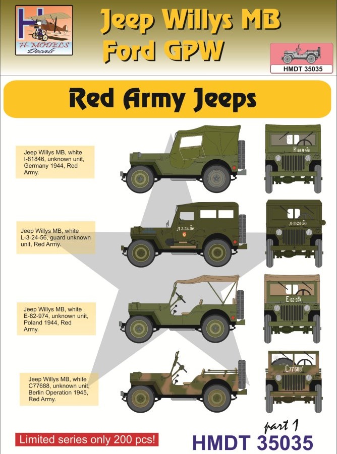 HM DECALS - 1/35 Decals Jeep Willys MB/Ford GPW Red Army 1