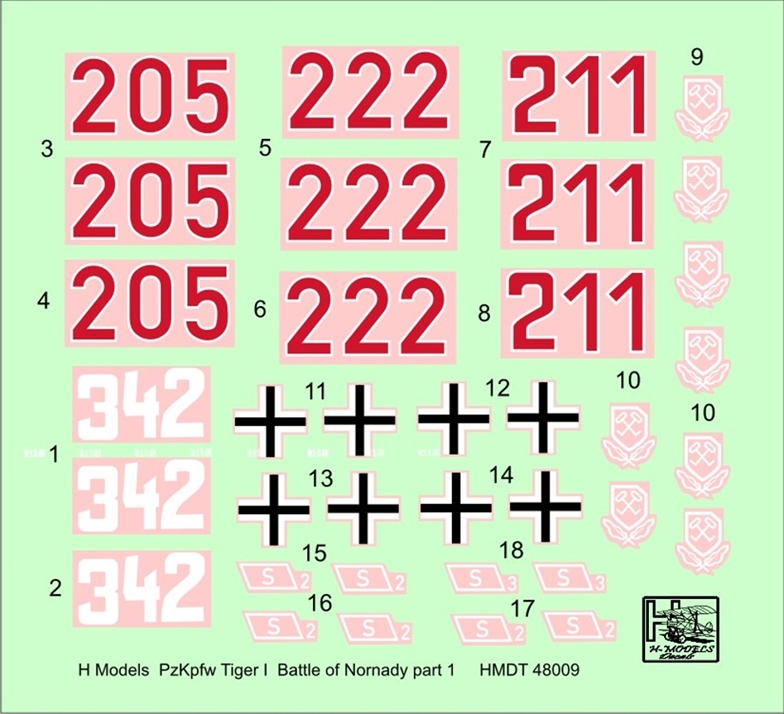 H-Model Decals - 1/48 Pz.Kpfw.VI Ausf.E Tiger I Battle of Normandy (Schwere SS-Pz. Abt.101), Pt.1