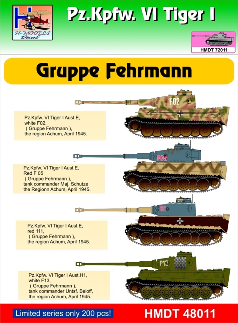 H-Model Decals - 1/48 Pz.Kpfw.VI Ausf.E/Ausf.H1 Tiger I Gruppe Fehrmann
