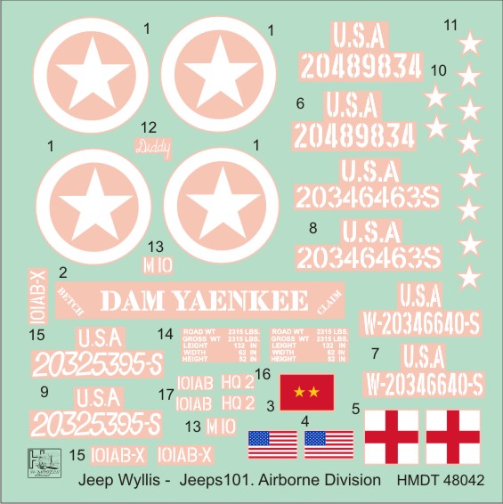 HM DECALS - 1/48 Decals Jeep Willys MB/Ford GPW 101 Airborne Division