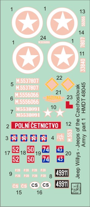 HM DECALS - 1/48 Decals Jeep Willys MB/Ford GPW CZ Army Brigade