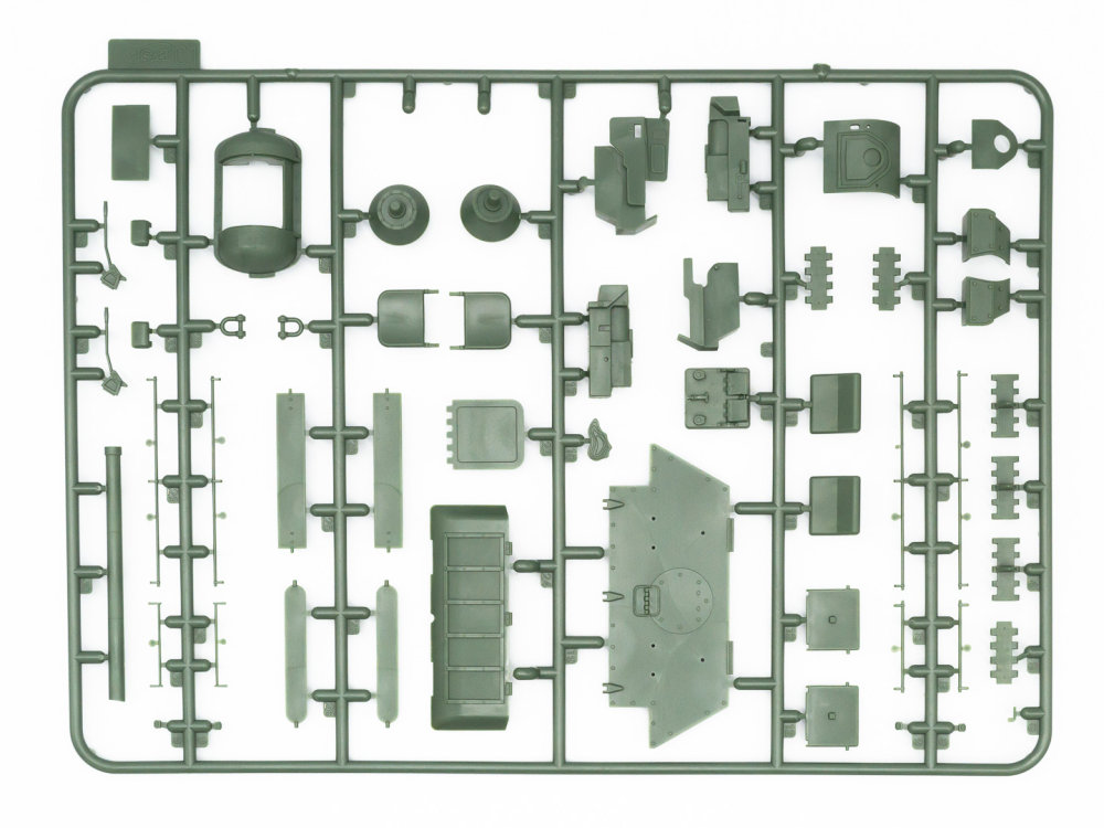 ICM - 1/35 Soviet -34/76 WWII Soviet flamethrower tank The OT-34/76 tank was a serial modification of the T-34/76 tank with a flamethrower installed in the frontal sheet of the hull. Aiming the flamethrower at the target was carried out by turning the entire tank. In the armored case, a 105-liter container was installed for a special fire mixture, it was located at the site of the radio station, which in turn was removed or placed in the tower. At the same time, the crew of the tank was reduced to three people. The use of flamethrower tanks in close combat made them a dangerous enemy, and had a strong psychological effect on the enemy. OT-34/76 retained its main armament (76.2 mm cannon) and could be used as a conventional tank. Several tank factories were engaged in the production of flamethrower OT- 34/76 in the Soviet Union, among which was the factory number 183 in Nizhny Tagil.