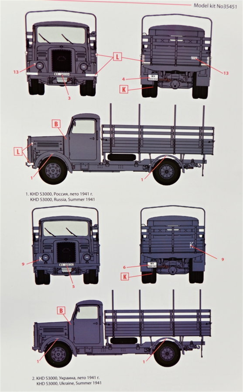 ICM - 1/35 Khd S3000, WWII German Army Truck. One of 5 main types of 3 ton trucks of German army of middle-end WWII. Was produced by Klokner-thumbold-Deutz since 1941. In general was produced 10684 trucks not all-wheel drive S3000. This model is the first on market in 35 scale. Highly detailed chassis, engine and interior. 4 versions decal sheet is included