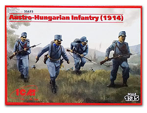 ICM - 1/35 Austro-Hungarian Infantry (1914) (4 figures) Completely new mould kit. The model kit includes 4 figures, weapon and equipment, machine gun of Schwarzlose. Accurate reconstruction of uniform`s elements.