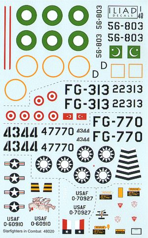 Iliad Design - 1/48 Lockheed F-104 Starfighters in Combat (6) Lockheed F-104A 'D 'Pakistan Air Force, Lockheed F-104C 0-70927 'Debbbie Sue 'and 0-60910 'The Pussycar '8th Tfw Udorn, Lockheed F-104G FG-770/4344 427th TFS/3rd Tfw Republic of China Air Force, 22313 141 Filo Turkish Air Force,
