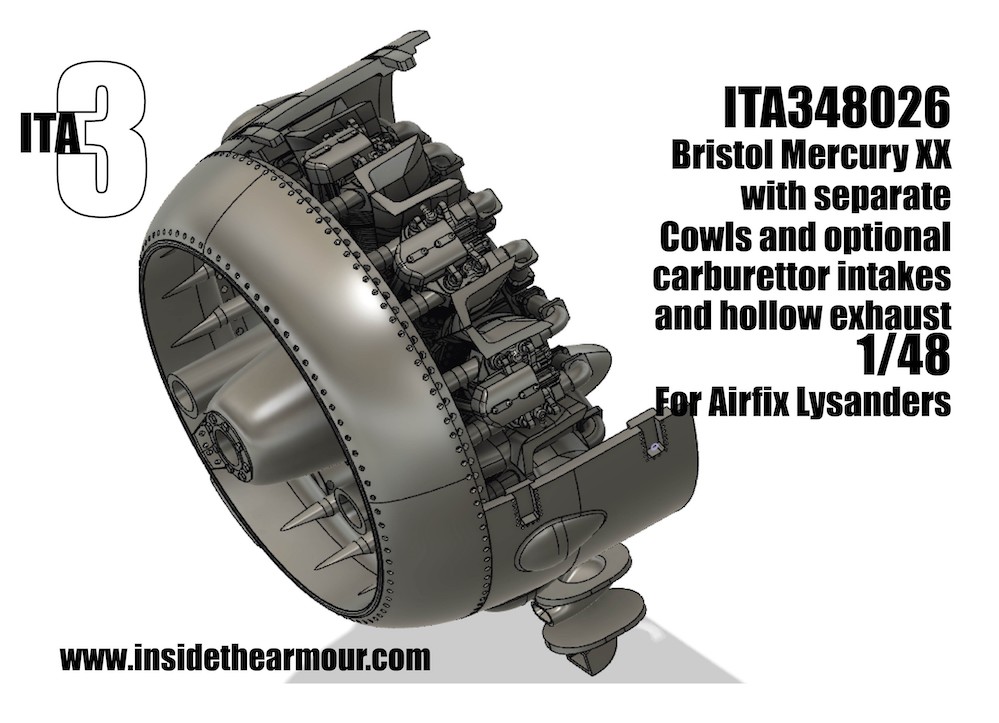 Inside the Armour - 1/48 Bristol Mercury Xx engine with separate cowls and optional carburettor intakes and hollow exhausts for the Airfix Westland Lysander Mk.I/Mk.III for Airfix 3d-printed