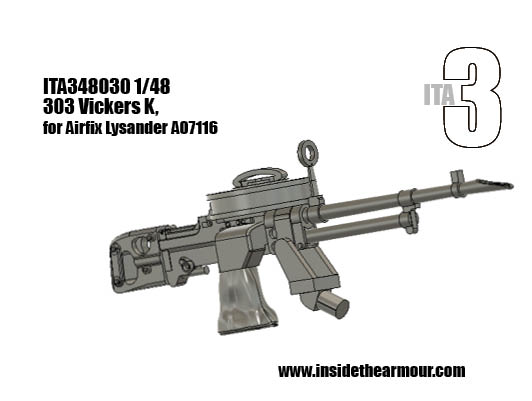 Inside the Armour - 1/48 Vickers K on a single mount for the Airfix Westland Lysander Mk.I/Mk.III for Airfix 3d-printed