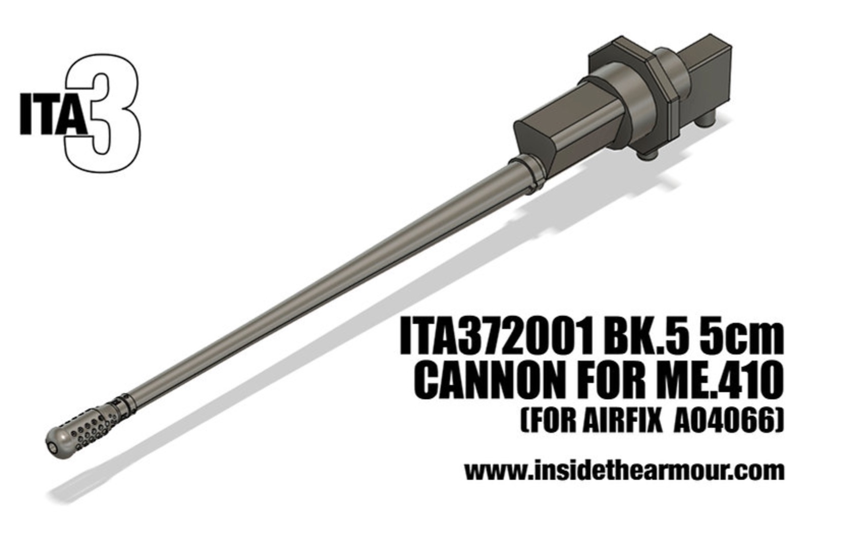 Inside the Armour - 1/72 BK.5 Barrel for Airfix Messerschmitt Me-410A-1/U-2 & U4 Includes hollow, pierced, muzzle break. Supplied with print supports which mus be removed and sanded down.