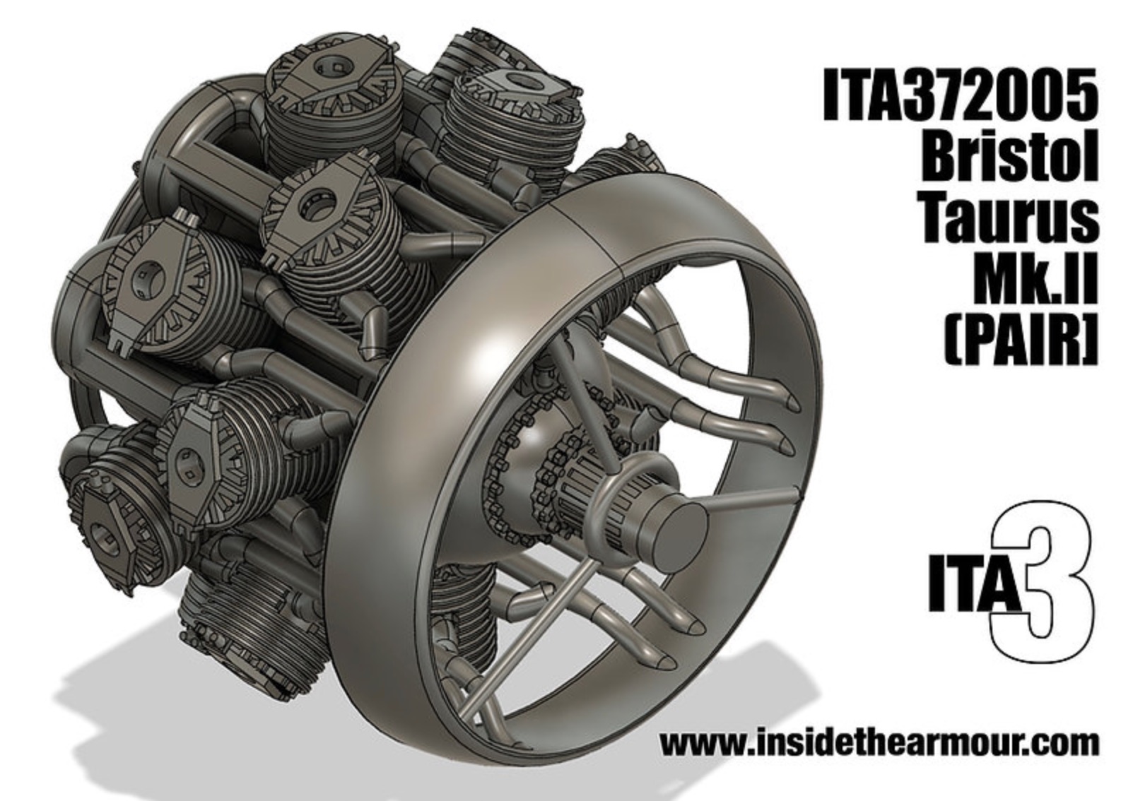 Inside the Armour - 1/72 Taurus II Engines set of 2 maintenance version for Airfix Bristol Beaufort. A set of two 1/72 handed Bristol Taurus II engines for the Airfix Bristol Beaufort, designed to show the engines with covers removed. Includes engines, front cowl/radiator, exhausts and ring of cowl flaps for Airfix