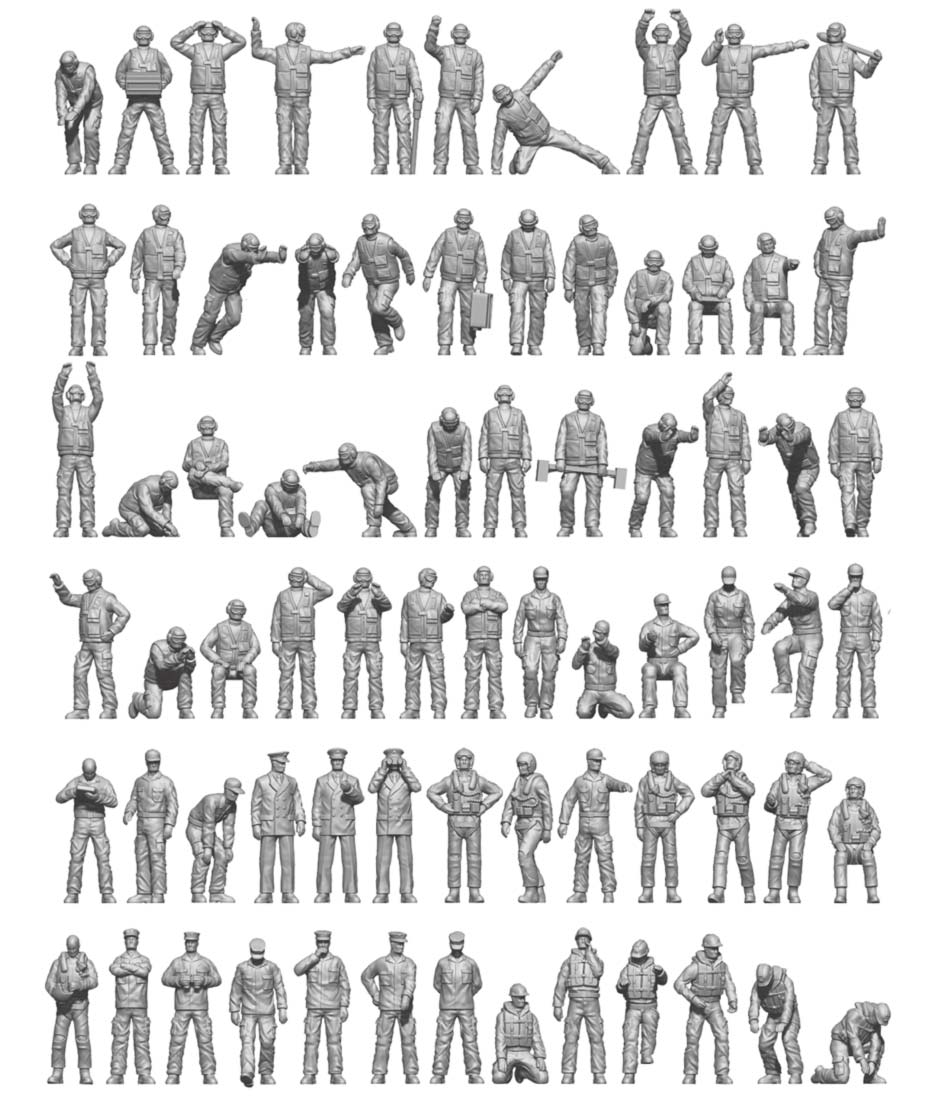 Precision-crafted 3D-printed resin figures tailored for warship modellers. Contains 72 figures, each figure has a distinct pose or/and uniform type. Specifically designed for Modern US Navy carriers.