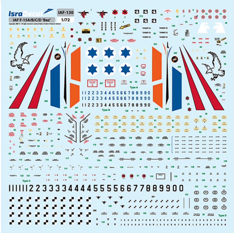 Isradecal - 1/72 Iaf McDonnell F-15A/F-15B/F-15C/F-15D Eagle 'Baz' 1:72 IAF130