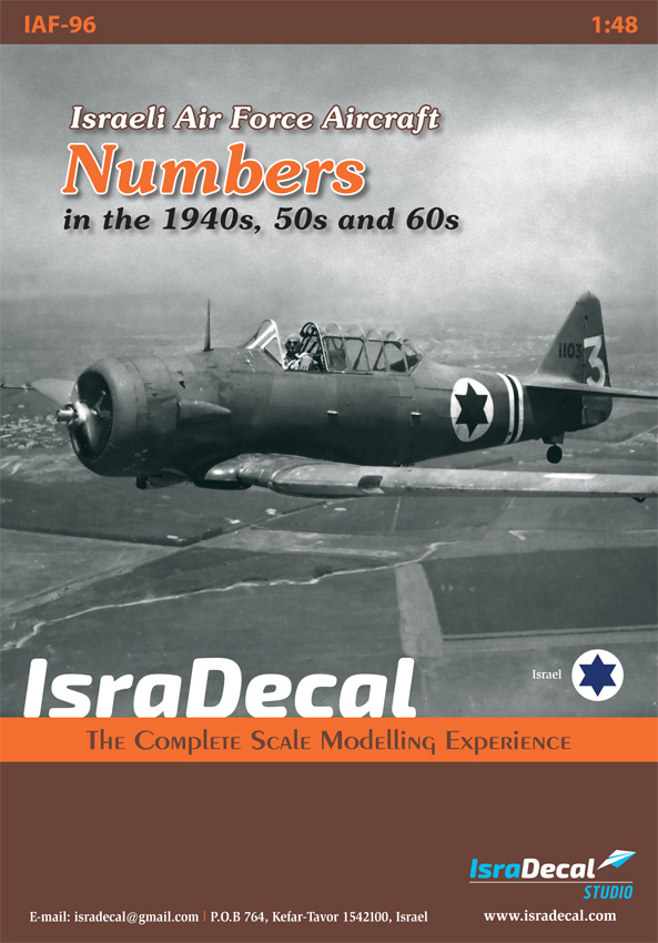 IsraDecal Studio - 1/48 Numbers for Israeli Air Force aircraft from the 1940s, 50s and 60s. Multiple sheets includes many numbers for many models. 8 pages instruction booklet.