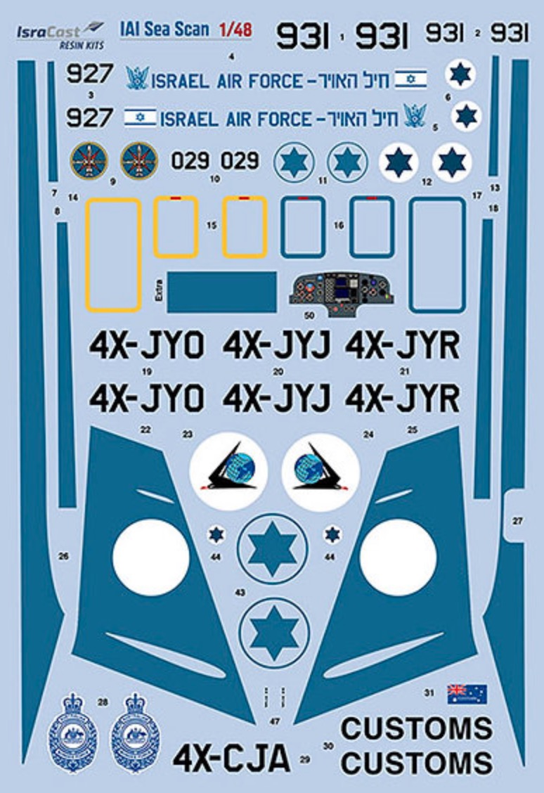 Isradecal - 1/48 Iai Seascan 1124N. Markings for the IAF, Iai and Australian Border Force.