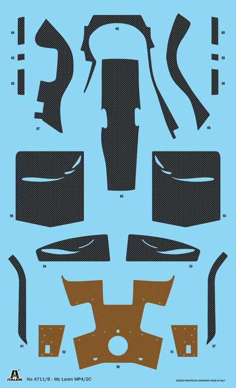 2 new decals sheet: Sheet A Exterior, cockpit and engine. Sheet B Composit materials Decals for 2 versions: 1986 Campionship Part1 Alain Prost 1986 Campionship Part2 Keke Rosberg