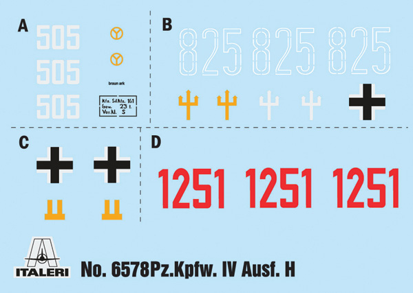 Italeri - 1/35 Pz.Kpfw.IV Ausf.H Metal Gun Barrel Gluable Rubber Or LINK-AND-LENGTH Tracks Decals For 5 Versions Colors Instructions SHEET