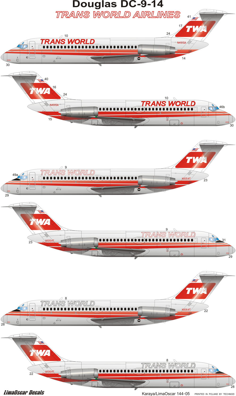 Karaya - 1/144 Douglas DC-9 (DC-9-14) TWA/Trans World Airlines (FLY plastic parts + Lima Oscar decals)