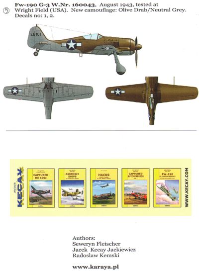 Karaya - 1/72 Captured Butcherbird Part 3 (5) Focke-Wulf Fw-190F-8 G9-T 509thFS/404thFG, Focke-Wulf Fw-109G-3 W.Nr 160016 Tested at Wright Fielkd 1944, Focke-Wulf Fw-190D-13 Yellow 10 from I./JG 26, Focke-Wulf Fw-190G-3 W.Nr. 160043 tested at Wright Field overpainted in US OD/Neutral Grey camouflage