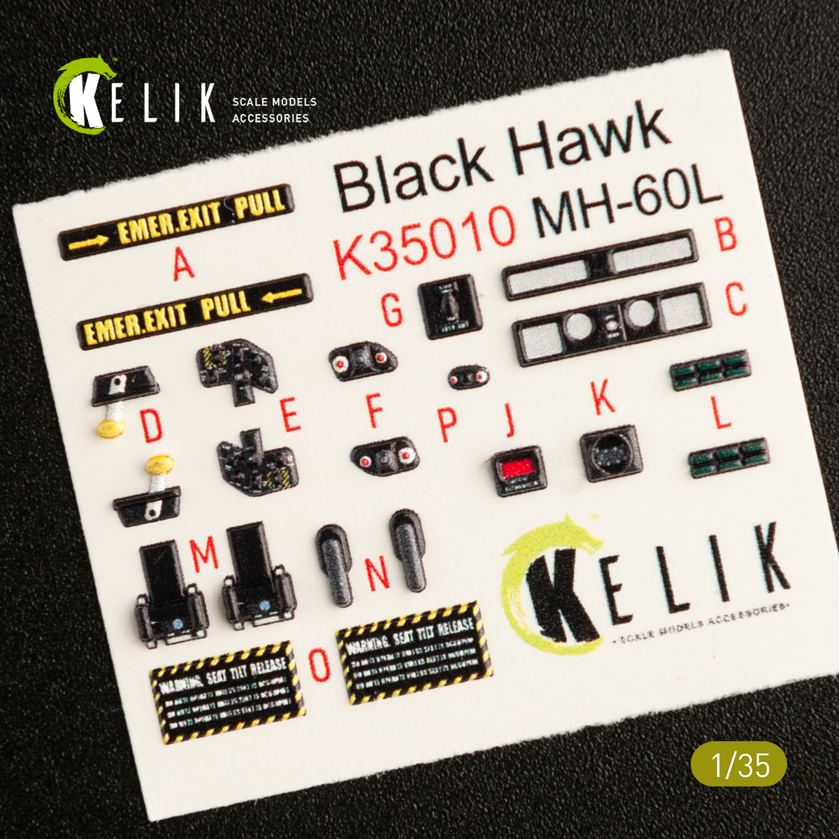 Kelik 3D Decals - 1/35 Sikorsky MH-60L Black Hawk interior 3D decals for Kitty Hawk Model kits