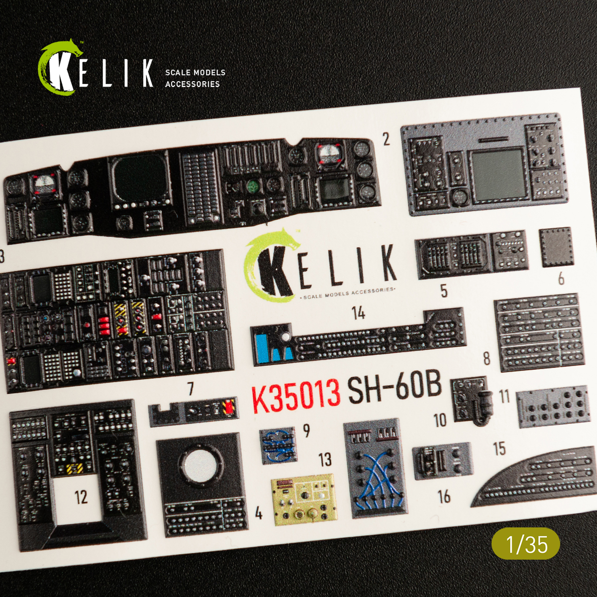 Kelik 3D Decals - 1/35 Sikorsky SH-60B interior 3D decals for Kitty Hawk Model kits