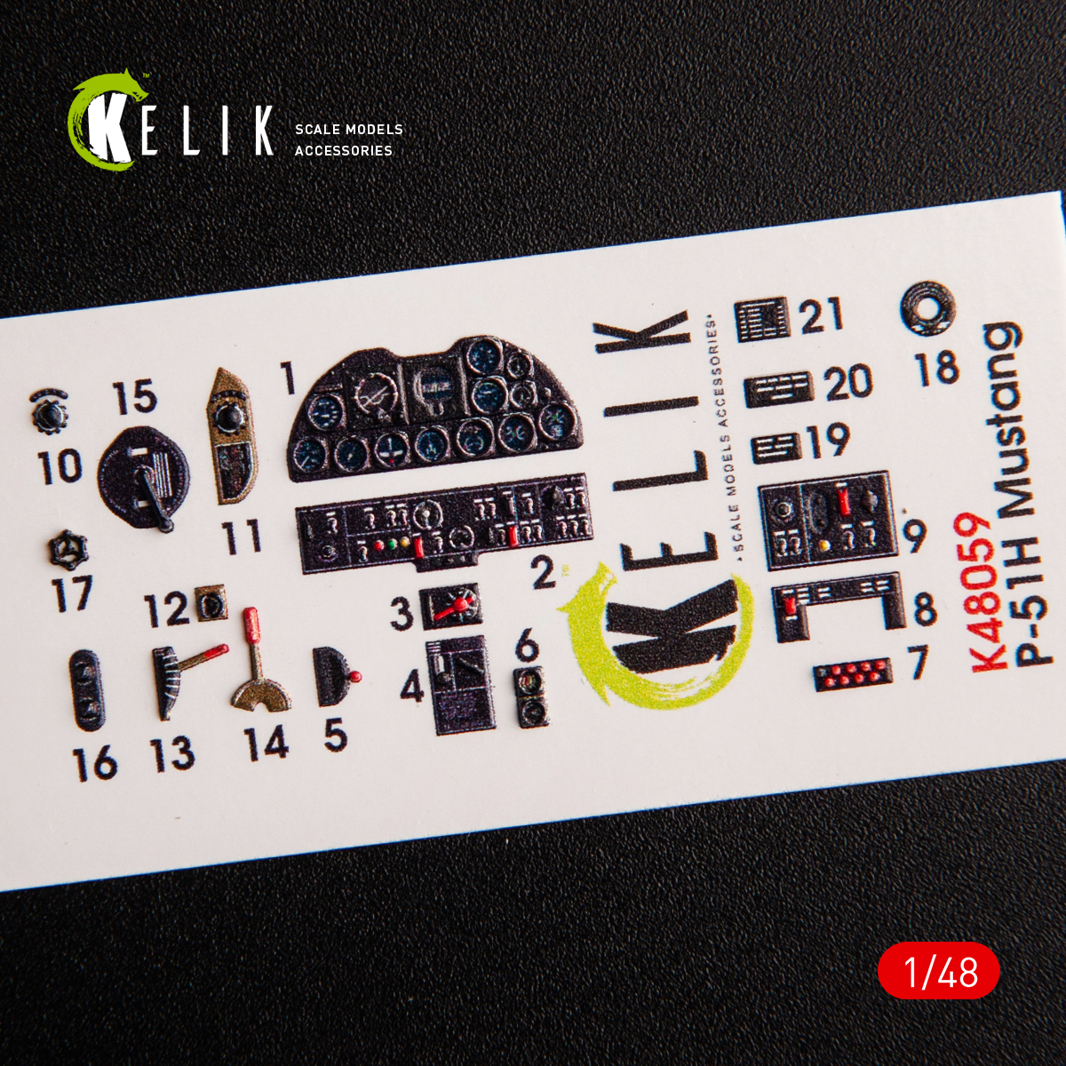 Kelik 3D Decals - 1/48 North-American P-51H Mustang interior 3D decals (for Modelsvit kits)