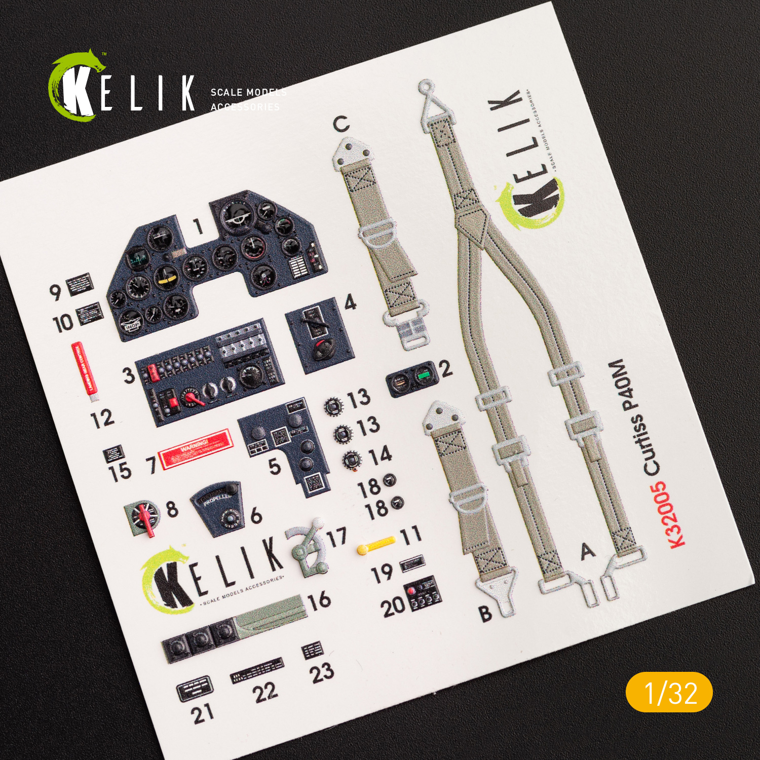 Kelik 3D Decals - 1/32 Curtiss P-40M interior 3D decals (for Trumpeter kits)