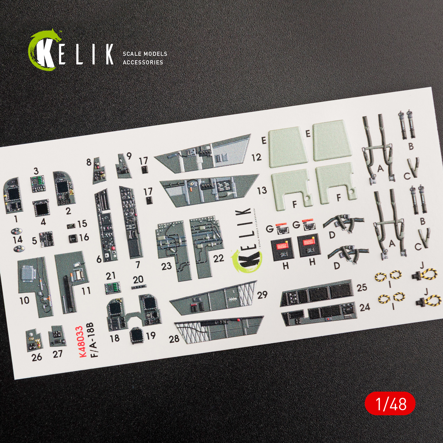 Kelik 3D Decals - 1/48 McDonnell-Douglas F/A-18B 'Hornet' interior 3D decals (for Kinetic Model kits)
