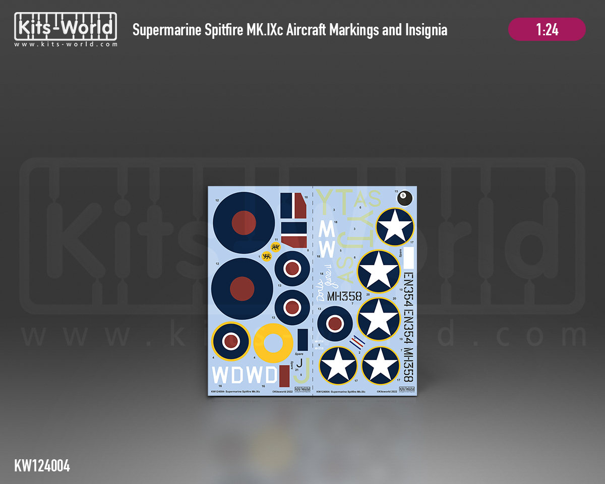 Kits-World - 1/24 Supermarine Spitfire Mk.IXc, MH358/YT-JAS, flown by Squadron Leader James E. Storrar, No. 65 Squadron, Raf Kingsnorth, Kent, summer 1943.