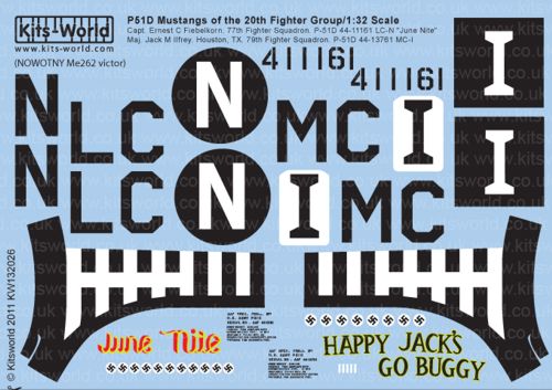 Kits-World - 1/32 North-American P-51D Mustang 20th Fg (2) 44-11161 LC-N 77th Fs Capart Ernest C Fiebelkorn 'June Nite',