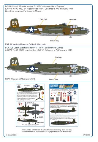 Kits-World - 1/32 Scale North-American B-25H-5 Catch 22 serial number 6N 410V nickname 'Berlin Express' (USAAF No 43-4432 6N registered as N10V) Delivered to Aaf February 1944. B-25J-25 Catch 22 serial number 6V 43-94512 nicknamed 'Dumbo' (USAAF No 43-30493 registered as N9451Z) Delivered to Aaf January 1945
