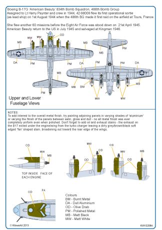 Kits-World - 1/32 B-17G 42-98008 2S - G ' W' "American Beauty" 834th Sqn, 486th BG Recommended HK Model KIT