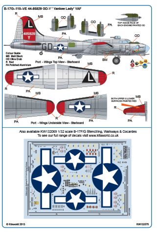 Kits-World - 1/32 Boeing B-17G-110-VE Flying Fortress 44-85829 GD-Y ' Yankee Lady' 'L' YAF