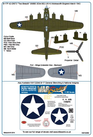 Kits-World - 1/32 Boeing B-17F Flying Fortress 42-29573 'Two Beauts' 358th BS 303rd BG (HVK) Molesworth England 1944